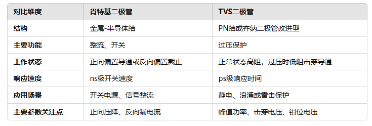 三、肖特基二極管與TVS二極管的主要區(qū)別
