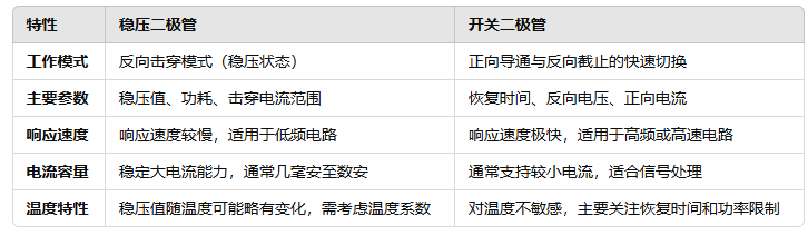 穩(wěn)壓二極管和開關(guān)二極管在電子電路中分別扮演著重要角色,各有獨(dú)特的優(yōu)勢與應(yīng)用場景。在選擇器件時(shí),工程師需要根據(jù)電路需求,結(jié)合二極管的特性和參數(shù)進(jìn)行選型。