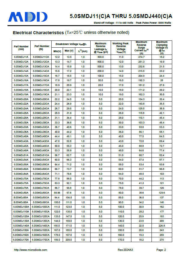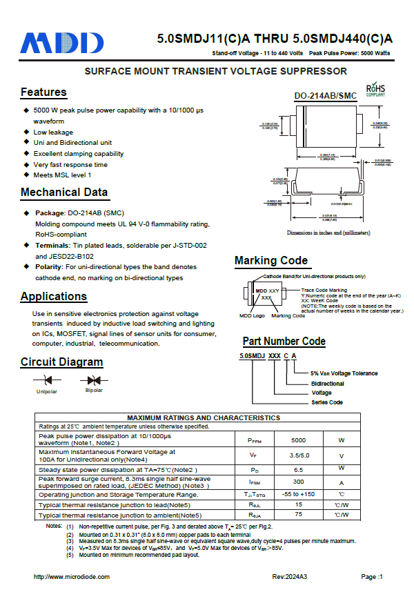 l 具有200-5000W峰值脈沖功率(10/1000μs波形)