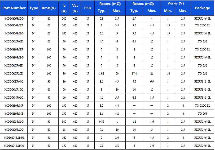 除此之外,MDD新推出的低壓大電流系列MOS針對(duì)不同的應(yīng)用場景,推出不同的型號(hào),以滿足各行業(yè)匹配需求。